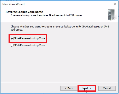Step 4. Select “IPv4 Reverse Lookup Zone” and Click on “Next”.