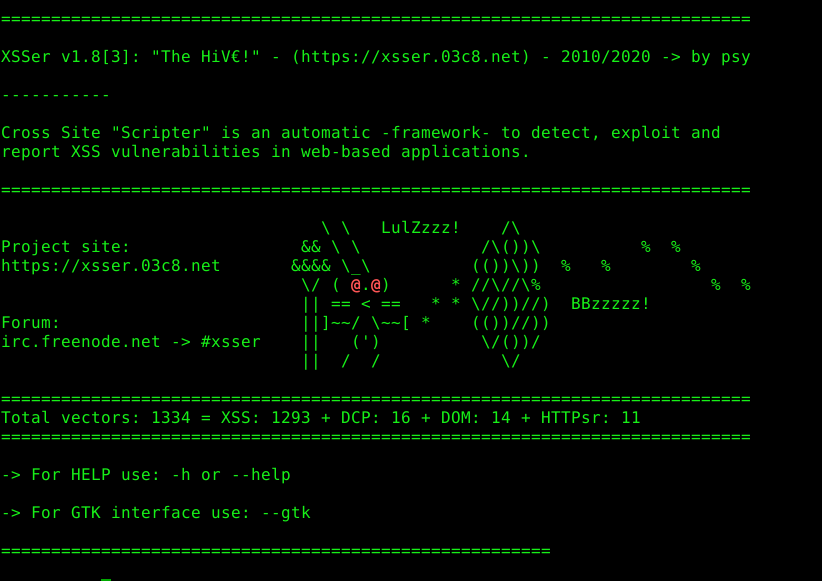XSSer has pre-installed [ > 1300 XSS ] attacking vectors and can bypass-exploit code on several browsers/WAFs: